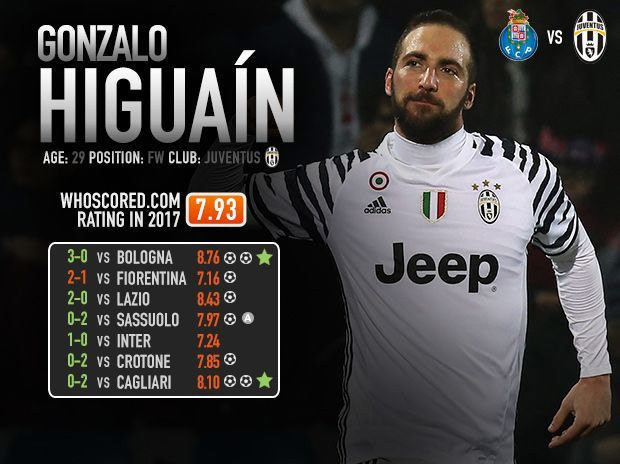 Bola.net - - Juventus akan menghadapi tuan rumah Porto di leg pertama babak 16 besar Liga Champions 2016/17, Kamis (23/2). Salah satu andalan Nyonya Tua tentu saja striker Gonzalo Higuain.
