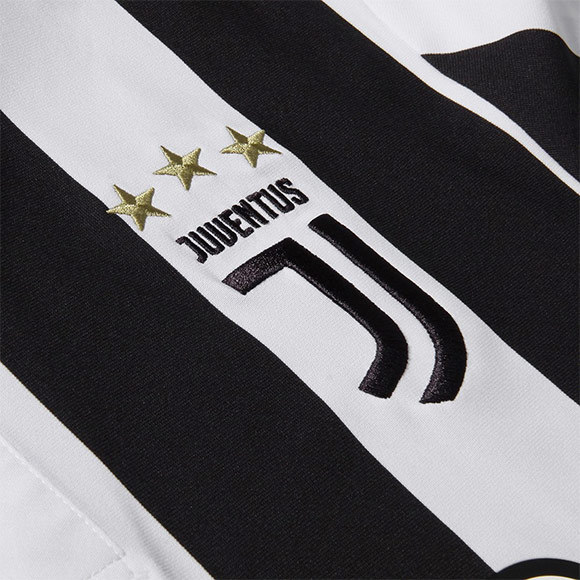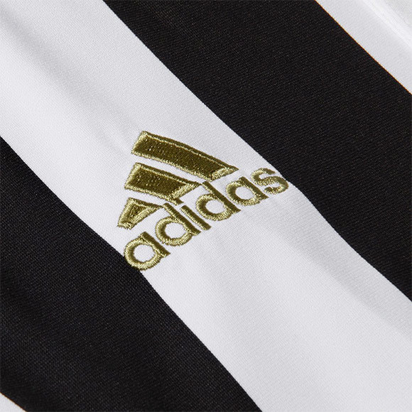 Jersey baru ini masih berupa garis-garis vertikal hitam dan putih. Tak banyak aksen warna lain, cuma logo Adidas yang memakai warna emas.