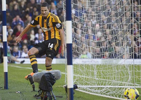 Hal itulah yang dialami oleh gelandang Hull, Jake Livermore. Mencetak gol pembuka di West Brom Sabtu kemarin, pemain pinjaman dari Tottenham tersebut berlari ke belakang gawang dan menendang kamera.