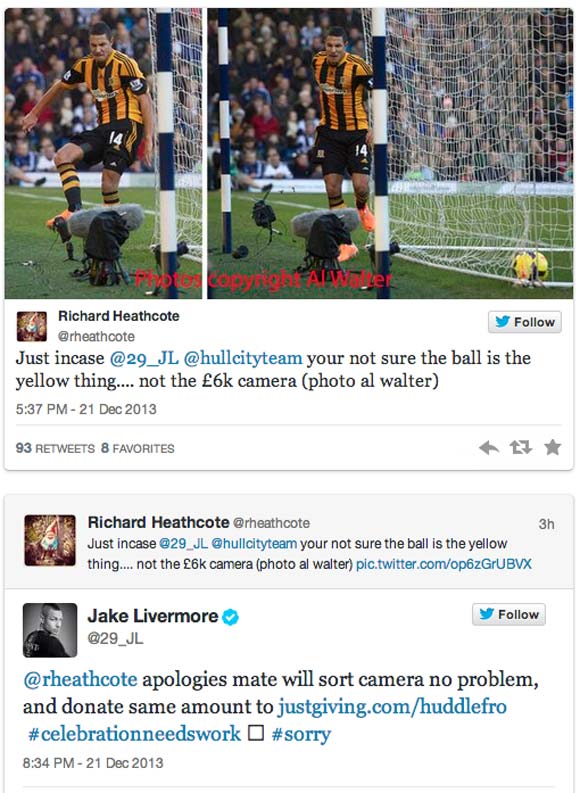 Dengan cara yang cukup berkelas, Livermore menjawab, akan membayar Heathcote untuk mengganti kamera dan juga akan memberikan sumbangan untuk acara amal Tom Huddlestone. (dm/gag)