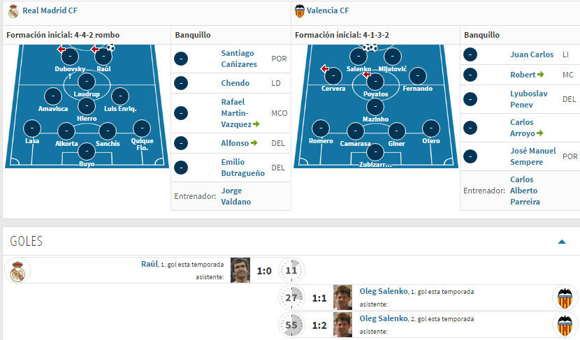Madrid kalah 1-2 di Santiago Bernabeu pada leg pertama. Sempat unggul lewat gol Raul Gonzalez, Madrid akhirnya menyerah setelah Oleg Salenko mencetak brace untuk tim tamu.