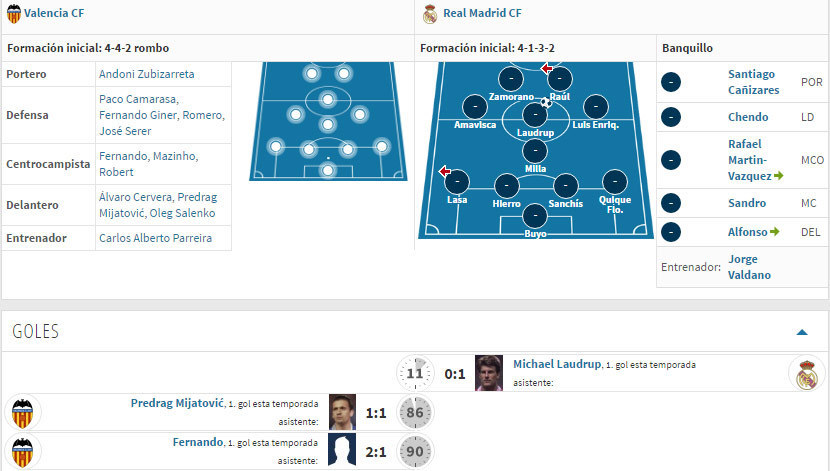 Ganti tandang ke Mestalla di leg kedua, Madrid besutan Jorge Valdano kembali kalah dengan skor serupa. Unggul lewat Michael Laudrup, Madrid lantas tumbang oleh gol-gol Predrag Mijatovic dan .