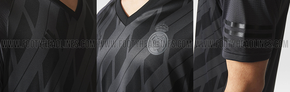 Meski bertajuk all black alias hitam total, namun bukan berarti jersey ini minim detail Logo Madrid dan Adidas akan dibuat monokrom warna hitam, menambah kesan misterius seragam ini. Garis-garis diagonal akan dipadu dengan garis tipis vertikal. Di bagian lengan, ada tiga garis khas adidas, namun kini posisinya horizontal.