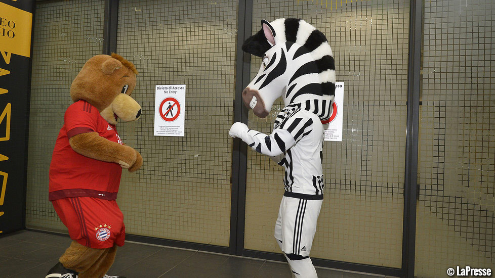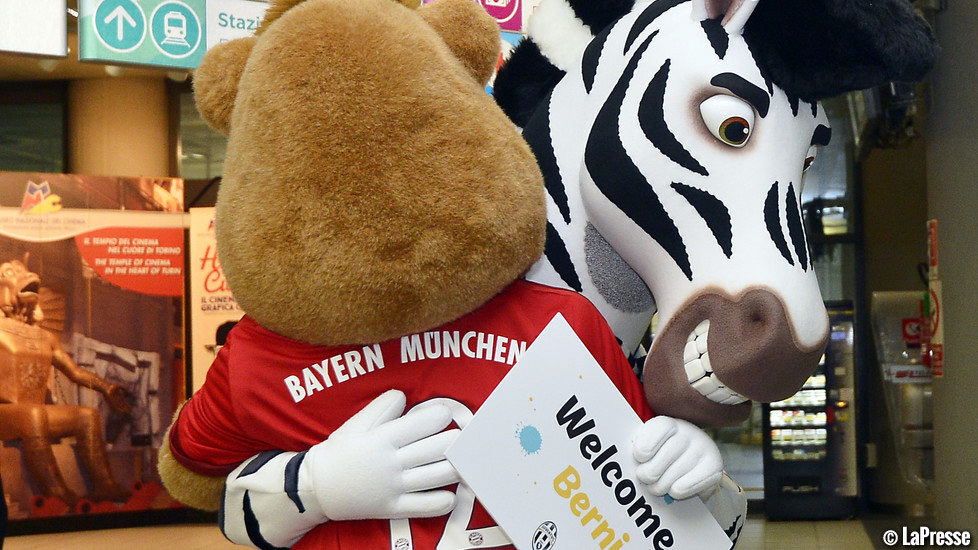 - Juventus akan meladeni Bayern Munchen di Turin pada leg pertama babak 16 besar Liga Champions 2015/16, Rabu (24/2). Kedatangan skuat Bayern di bandara Turin disambut oleh 'J', zebra maskot Juventus.