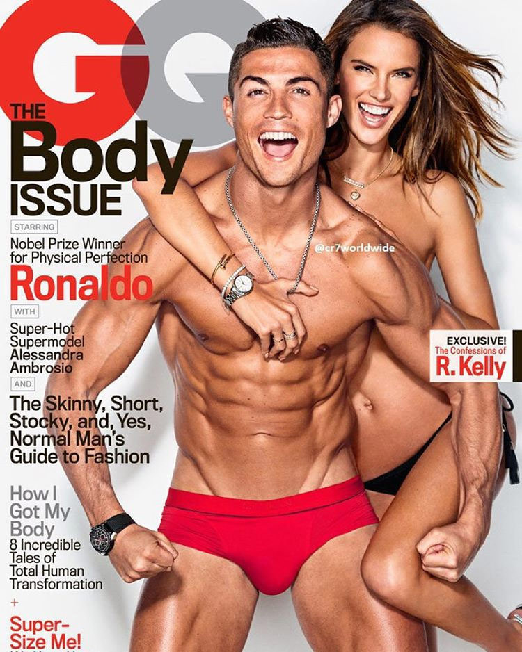 - Bintang Real Madrid dan Portugal Cristiano Ronaldo berpose untuk majalah GQ edisi Februari 2015. Ronaldo tidak sendirian, tapi ditemani supermodel seksi Victoria's Secret Alessandra Ambrosio asal Brasil.