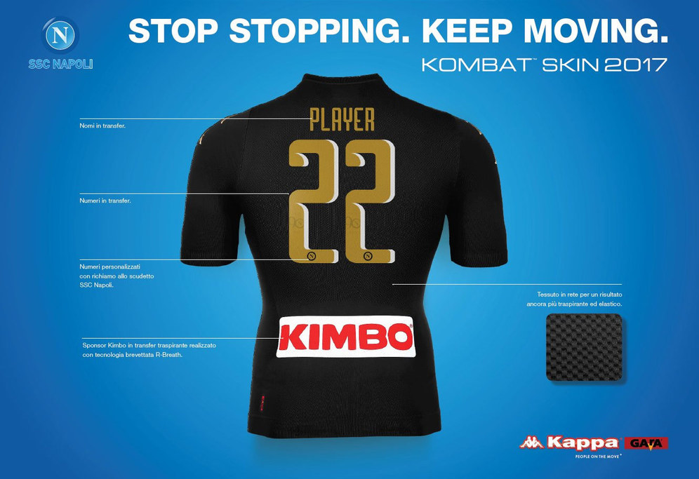 - Napoli merilis Jersey ketiga untuk musim 2016/17. Memakai warna dasar hitam, jersey buatan Kappa ini juga dilengkapi detail-detail berwarna emas.