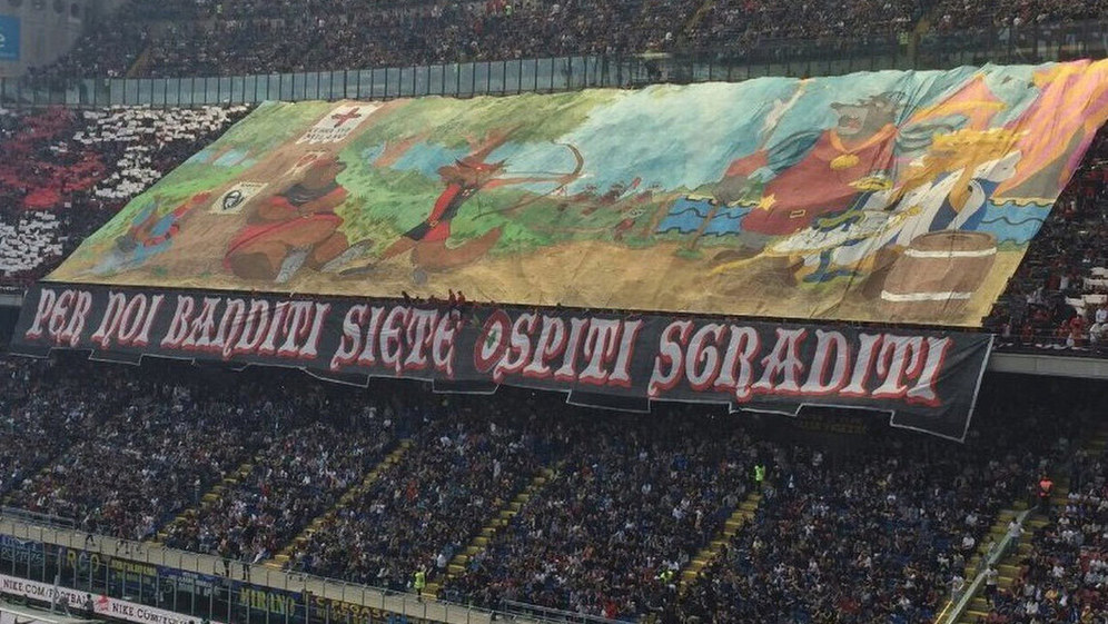 Ultras Inter mengusung tulisan "Viva Inter." Dari kubu Milan, mereka menyampaikan pesan "bagi kami, para bandit adalah tamu yang tak dikehendaki."