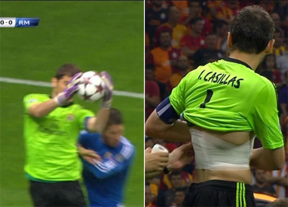 Pada awalnya, semua tampak baik-baik saja. Namun, begitu Casillas memegangi rusuknya sambil menunjukkan ekspresi kesakitan, kubu Madrid pun sadar bahwa ada yang salah. Casillas lalu mendapatkan perawatan, digantikan oleh Diego Lopez, dan terpaksa melihat kemenangan telak 6-1 timnya dari tepi lapangan.