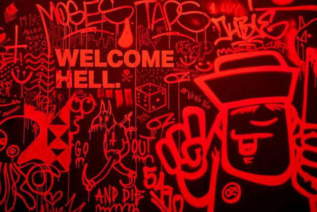 Di salah satu dindingnya, bahkan terdapat tulisan 'welcome hell' atau mungkin maksudnya 'welcome to hell" alias 'selamat datang di neraka'. Lihat foto-fotonya berikut ini seperti dilansir Top Drawer.