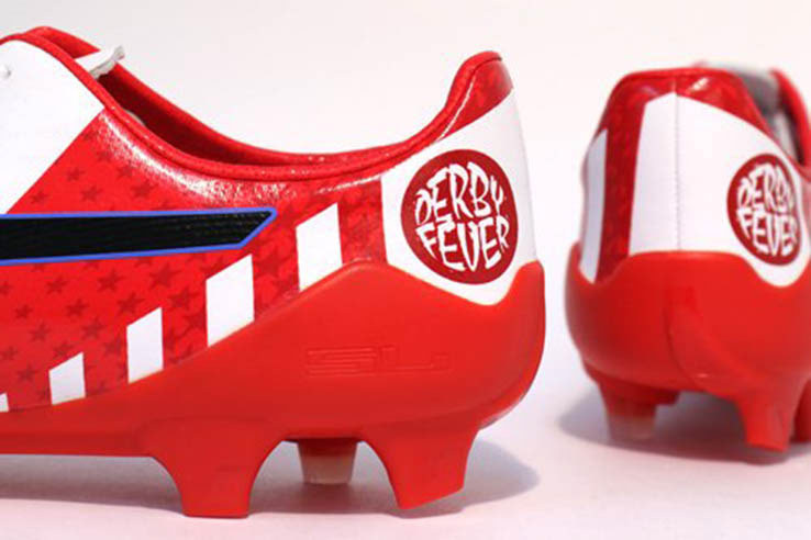 Sepatu tersebut bermotif merah-putih, warna khas Atletico. Di bagian belakang, ada tulisan 'Derby Fever'. Berikut foto-fotonya dari Footy Headlines.