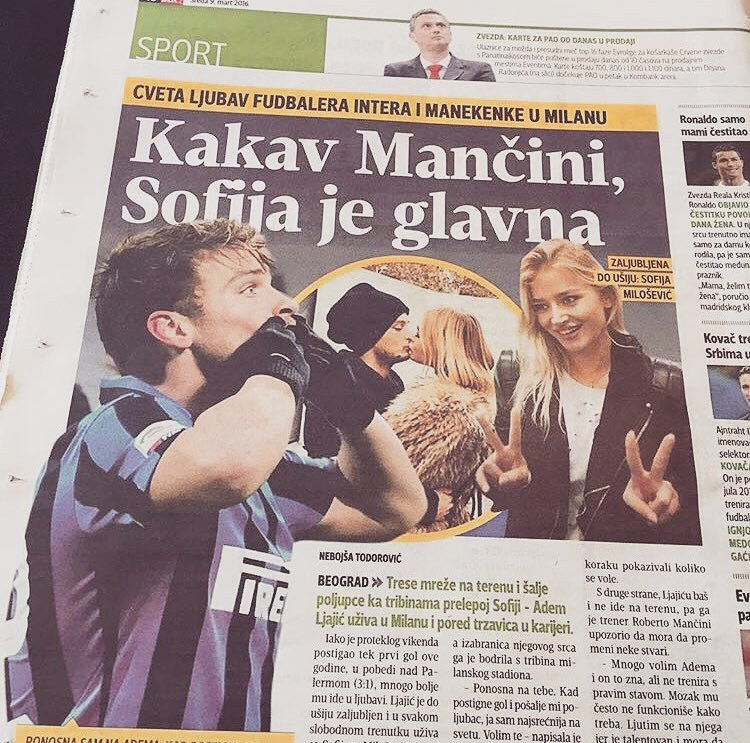 - Adem Ljajic, pemain timnas Serbia yang memperkuat Inter Milan, baru-baru ini mulai menjalin hubungan dengan seorang model cantik dan seksi dari negaranya. Namanya adalah Sofija Milosevic.