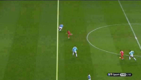 Momen kontroversial itu terjadi pada menit ke-19 kala Raheem Sterling berhasil menerima through pass Luis Suarez, dan menjebol gawang Joe Hart. Namun hakim garis menganggap Sterling sudah terjebak offside, kendati dalam tayang ulang posisinya masih ada di belakang Aleksandar Kolarov yang terlambat naik.