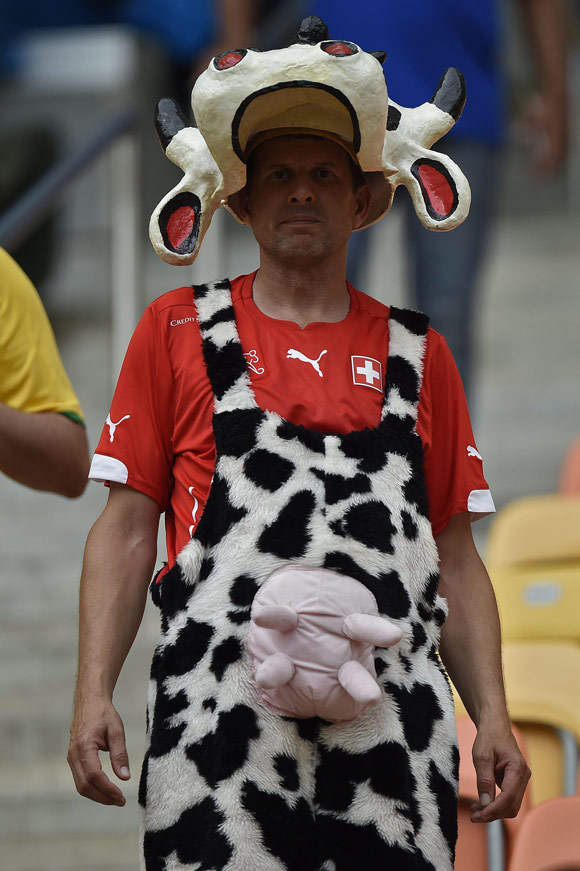 Bola.net - Berikut kompilasi foto aksi serta dandanan unik dan kreatif para suporter dari Grup E Piala Dunia 2014 (Prancis, Swiss, Ekuador, Honduras).