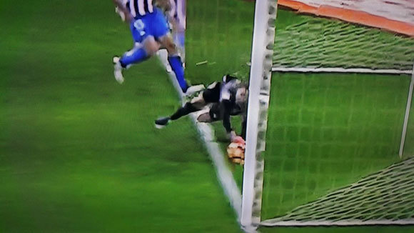 Wasit David Fernandez memutuskan tak ada gol tercipta karena tak ada tanda dari hakim garis. Namun dari video tayangan ulang alias replay, terlihat bahwa bola sundulan Ronaldo memang sudah melewati garis gawang ketika mengenai tangan Oblak.