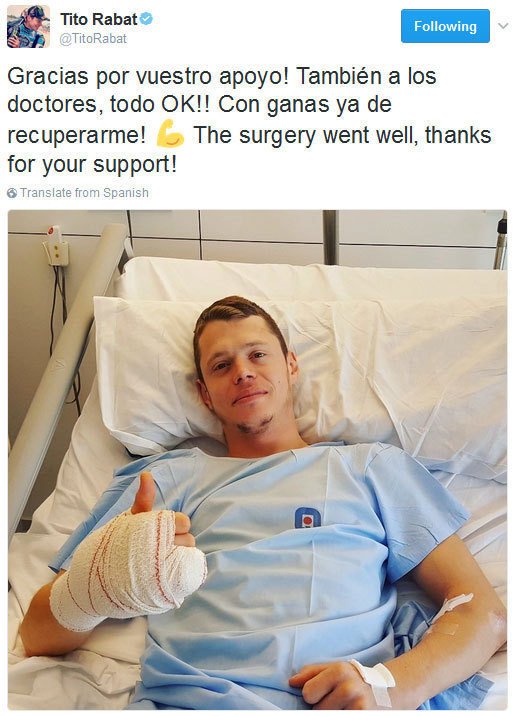 Menurut MotoGP.com, Rabat segera dilarikan ke rumah sakit di Kuala Lumpur untuk pemeriksaan awal, yang membolehkannya kembali ke Barcelona, Spanyol untuk menjalani operasi di Hospital Universitari Dexeus pada Kamis (2/2). Dr. Xavier Mir yang memimpin jalannya operasi pun membeberkan cedera yang merundung Rabat.