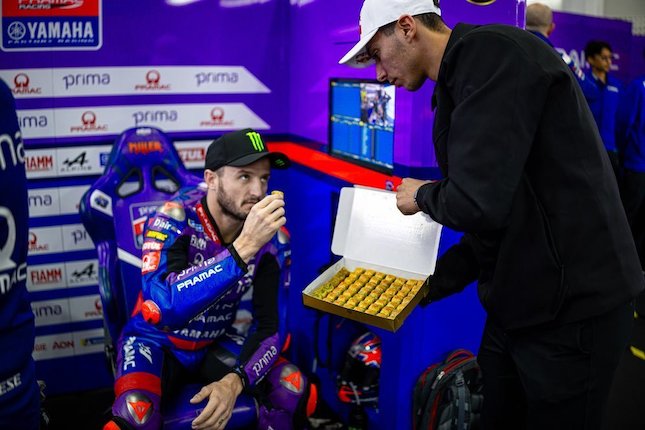 Sebagai tanda terima kasih karena kedatangannya di MotoGP disambut dengan hangat, Razgatlioglu pun membawakan kudapan khas Turki, baklava, untuk seluruh kru Prima Pramac Racing dan Monster Energy Yamaha. Sebelumnya, Razgatlioglu memang dikenal sering bagi-bagi baklava ke penghuni paddock WorldSBK.