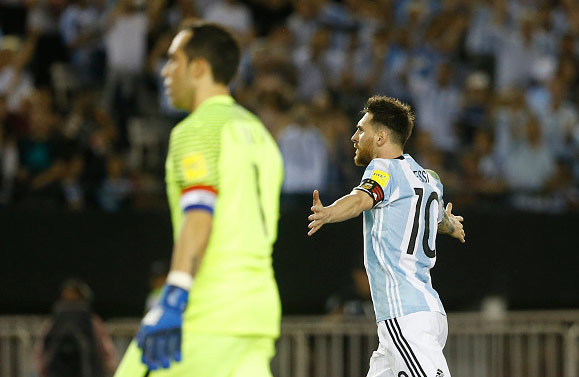 Messi, yang tahun lalu dikecam gara-gara kegagalan penaltinya melawan Chile di final Copa America Centenario, maju sebagai algojo. Kali ini, dia tidak melakukan kesalahan.