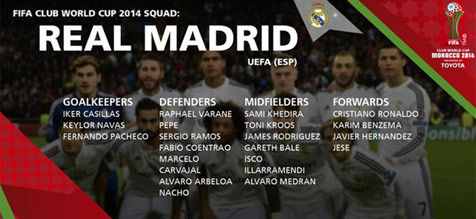 Bola.net - Real Madrid telah menyerahkan daftar skuat yang akan mereka bawa ke ajang Piala Dunia Antarklub. Kompetisi yang mempertemukan klub-klub jawara antar konfederasi ini akan digelar di Maroko Desember ini.