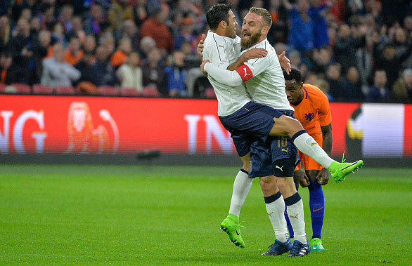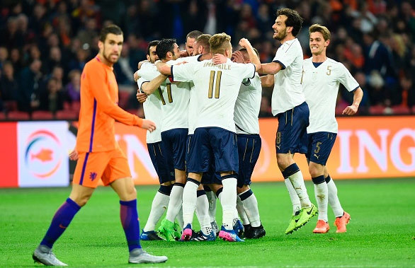 Italia menang atas Belanda dalam partai uji coba di Amsterdam, Rabu (29/3). Italia menang dengan skor 2-1, dan itu adalah kemenangan friendly di luar kandang yang pertama bagi mereka sejak November 2011.