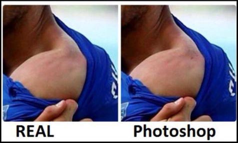 Foto bekas gigitan Suarez di pundak Chiellini adalah hasil rekayasa atau Photoshop. Sebagian malah menunjukkan pundak Chiellini yang bersih tanpa bekas gigitan.