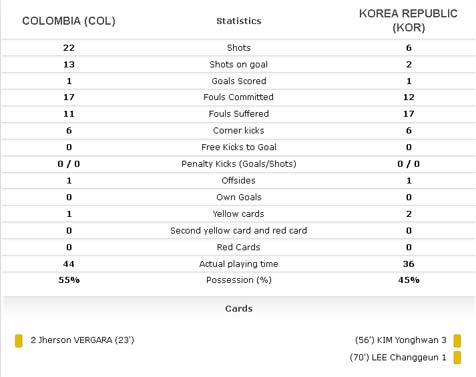 Kolombia 1-1 Korea Selatan