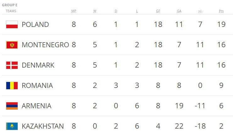 Kemenangan ini membuat Polandia tetap memimpin klasemen Grup E dengan keunggulan tiga poin atas Montenegro dan Denmark. Polandia semakin dekat ke Rusia 2018.