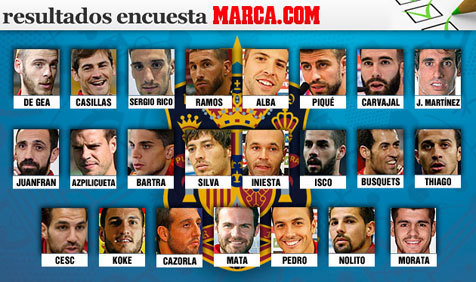 Inilah 23 nama pemain skuat Spanyol untuk Euro 2016 pilihan responden Marca selengkapnya.