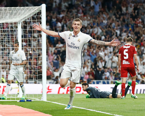 Kroos memperkuat Madrid sejak musim 2014/15. Kemenangan atas Sevilla ini adalah kemenangan yang ke-100 baginya.
