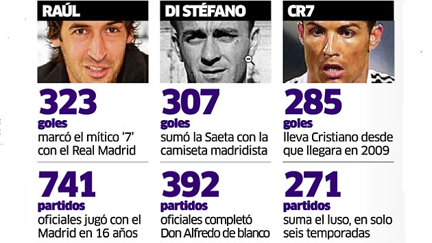 Pemain Portugal itu kini tengah mengoleksi 285 gol dari 271 pertandingan yang ia mainkan untuk Madrid. Ia ada di urutan tiga di bawah Raul dan Alfredo Di Stefano, dalam daftar top skorer sepanjang masa Los Blancos.