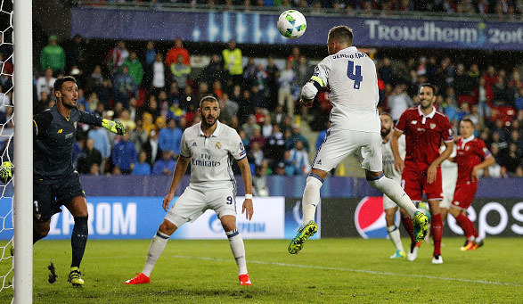 Yang pertama adalah ketika melawan Sevilla di Piala Super Eropa pada bulan Agustus 2016. Di saat injury time, tepatnya menit 93, Ramos menyamakan kedudukan jadi 2-2 dan gol itu terbukti krusial. Madrid akhirnya menang 3-2 lewat gol Dani Carvajal di extra time.