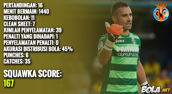 Bola.net - - La Liga Spanyol musim 2016/17 sudah berjalan 16 jornada. Berikut lima pemain dengan performa terbaik sejauh ini dari posisi penjaga gawang.