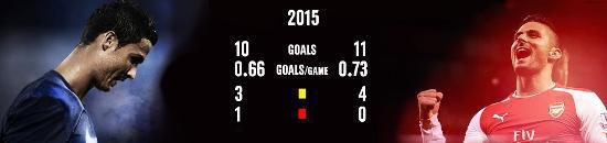 Usai mencetak 22 gol di Arsenal musim lalu, Giroud kini makin mendekati torehan gol terbaiknya di klub. Namun menariknya, statistik pemain Prancis itu di tahun 2015 ternyata jauh lebih baik dari bintang Real Madrid pemenang Ballon d'Or 2014 - Cristiano Ronaldo.