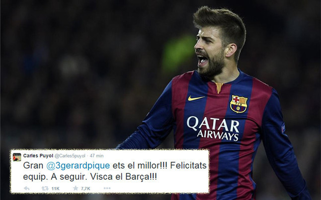 Menggunakan akun Twitter miliknya, Puyol lantas memberikan pujian pada Pique dengan menulis pesan: 'Hebat @3gerardpique, anda memang yang terbaik!! Selamat untuk tim. Teruslah seperti ini. Visca el Barca!!!"