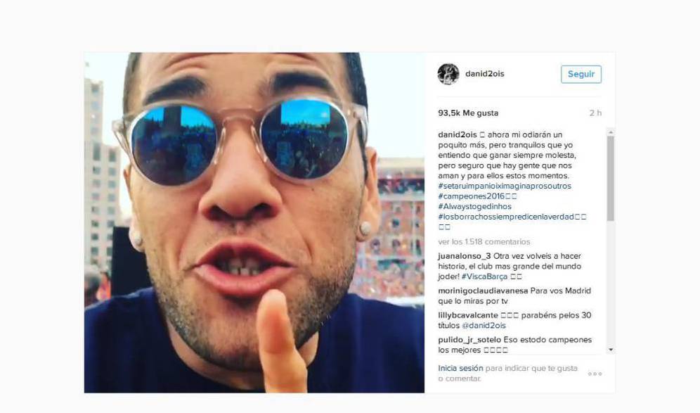 Lewat Instagram, Alves menuliskan pesan: "Sekarang, ada orang yang lebih membenci saya lebih dari sebelumnya. Namun jangan khawatir, saya tahu bahwa menang memang rasanya menyebalkan bagi orang lain. Tapi jelas ada orang yang mencintai kami saat ini."