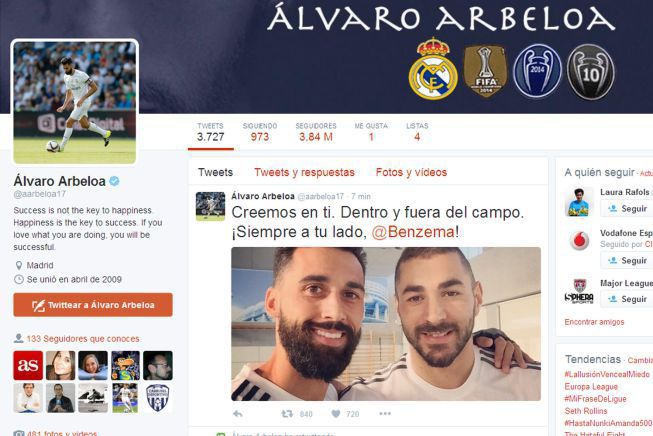 Namun Arbeloa rupanya percaya bahwa rekannya itu tidak bersalah. Dengan menggunakan Twitter, ia menuliskan pesan: "Kami percaya pada mau, baik di dalam dan luar lapangan Benzema."