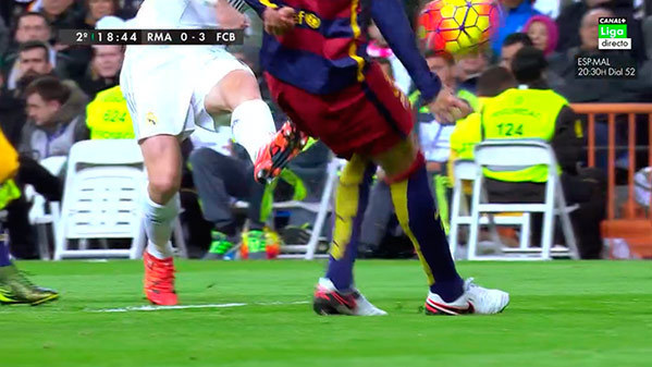 - Real Madrid punya satu klaim penalti pada menit 63 ketika bola tendangan Gareth Bale dengan jelas mengenai tangan Gerard Pique. Namun, wasit Fernandez Borbalan tidak memberi hadiah penalti untuk Madrid.