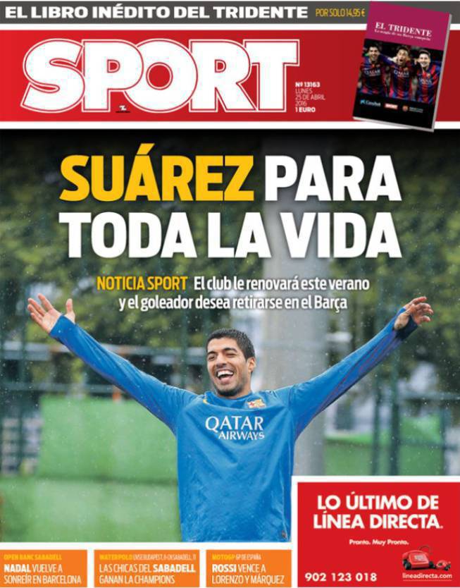 Jumlah gol Suarez, yang membuatnya punya peluang besar memenangkan Sepatu Emas di akhir musim, serta kerja samanya yang apik dengan Lionel Messi, ditengarai membuat Barca amat puas dan berencana untuk terus mempertahankan sang striker untuk waktu yang lama.