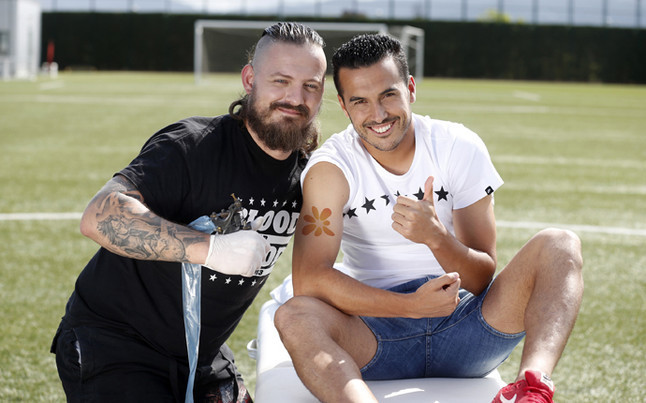 Pedro rupanya mendapat tantangan untuk membuat tato anyar di bagian lengan, sebagai bagian dari dukungan terhadap organisasi pariwisata Turismo de Canarias. Pemain Spanyol tersebut lantas mendapat gambar motif matahari, atau sama dengan logo organisasi, di bagian lengan.