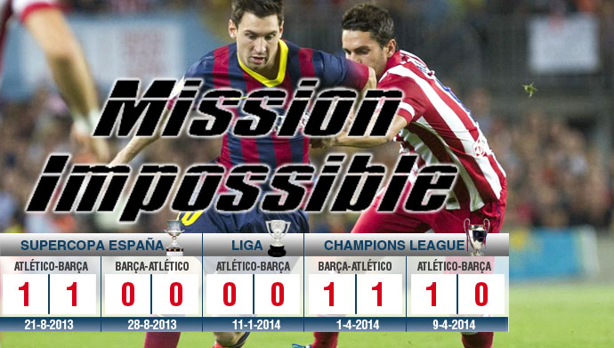 Bola.net - Duel menentukan antara Barcelona dan Atletico Madrid di jornada terakhir yang akan digelar di Camp Nou akhir pekan ini tak ubahnya seperti Mission Impossible alias misi yang mustahil bagi tuan rumah, setidaknya demikian menurut laporan Sport.