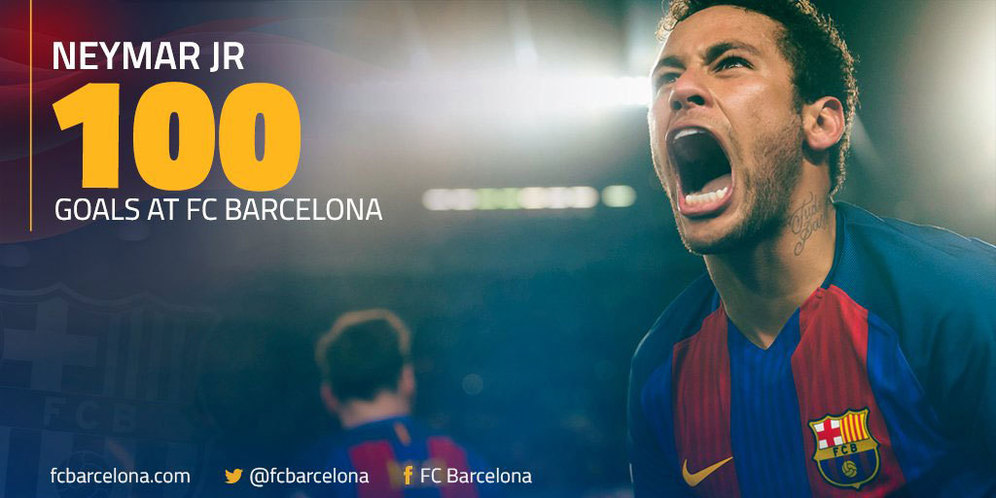 Bola.net - - Neymar kembali memberi bukti bahwa ia adalah salah satu bintang terbaik yang dimiliki oleh Barcelona. Pemain asal Brasil ini baru saja mencatatkan golnya yang ke-100 untuk Blaugrana di semua kompetisi.