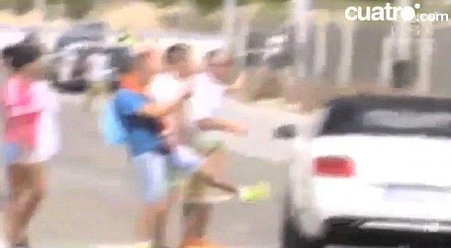 Beberapa orang mencoba meminta tanda tangan Bale, namun ia tidak berhenti dan dua di antaranya mencoba untuk menendang mobil sang pemain, menurut laporan yang diturunkan oleh The Daily Mail.