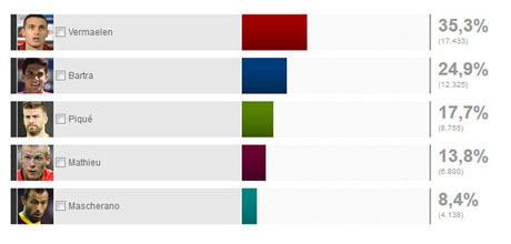 Pemain asal Belgia yang mengaku masih belum cukup fit itu mendapatkan 35,3 persen suara dari para penggemar. Ia jauh mengungguli Jeremy Mathieu dan Gerard Pique, yang sudah tampil di pra-musim Barca sebelumnya.