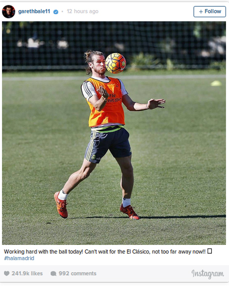 Tak lupa, ia juga menambahkan kalimat: "Terus bekerja keras dengan berlatih dengan bola hari ini! Tidak sabar lagi untuk bermain di El Clasico, yang sebentar lagi akan dimainkan!"
