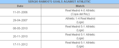 Gol pertama Ramos tercipta di ajang Copa del Rey musim 2005/06, ketika Madrid menang 4-0 di Santiago Bernabeu. Gol terkini lahir di pentas La Liga musim lalu dengan sebuah sundulan dalam kemenangan 5-1 di kandang.
