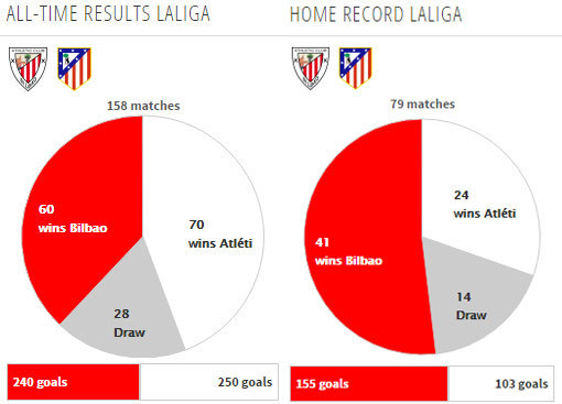 Atletico selalu menang dalam tiga laga tandang terakhirnya melawan Bilbao di La Liga. Musim lalu, Atletico menang 1-0 di San Mames lewat gol tunggal Fernando Torres.
