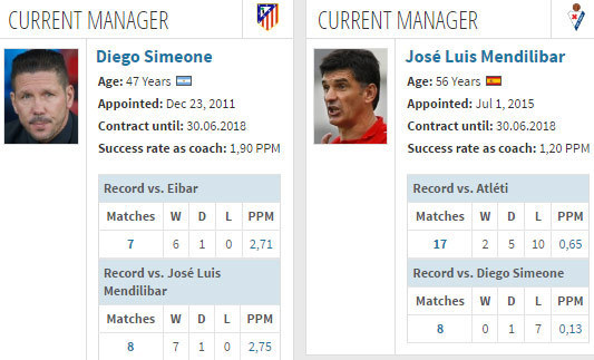 Pada pertemuan pertama di La Liga musim ini, Atletico menang 2-0 di kandang Eibar. Gol-gol Atletico dalam pertandingan tersebut dicetak oleh Saul Niguez menit 54 dan Antoine Griezmann menit 74.