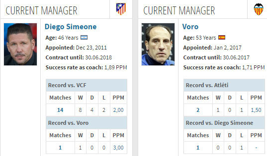 Pada pertemuan pertama di La Liga musim ini, Atletico menang 2-0 di kandang Valencia. Gol-gol Atletico dalam laga tersebut dicetak oleh Antoine Griezmann dan Kevin Gameiro.