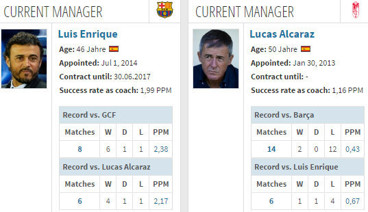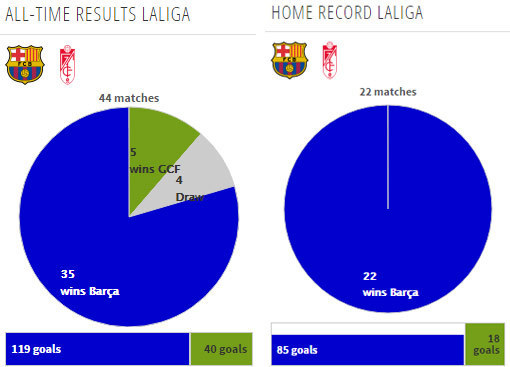 Sejauh ini, Barcelona memenangi semua pertandingan kandangnya melawan Granada di La Liga. Rekornya adalah 22 kemenangan dengan mencetak total 85 gol dan hanya kebobolan 18. [initial]