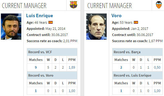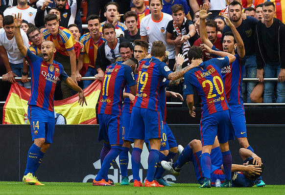 Bola.net - - Peringkat 2 Barcelona (60 poin) akan menjamu peringkat 13 Valencia (30 poin) di jornada 28 La Liga 2016/17, Senin (20/3). Barcelona hanya kalah sekali (M3 S1) dalam lima pertandingan terakhir melawan Valencia di La Liga.