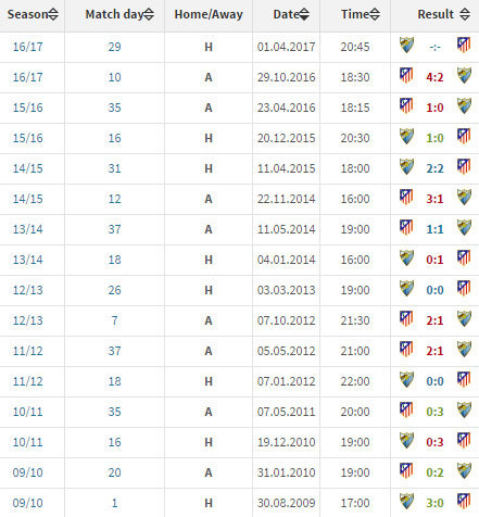 Bola.net - - Peringkat 15 Malaga (27 poin) akan menjamu peringkat 4 Atletico Madrid (55 poin) di jornada 29 La Liga 2016/17, Minggu (02/4). Malaga selalu kalah dalam dua laga terakhirnya melawan Atletico.